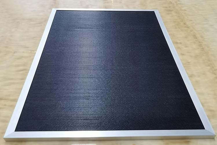 The composite of anti-slip CFRT sheet and polypropylene honeycomb is completed by thermal lamination, which heats the CFRT sheet and PP honeycomb core to melt them together. Sometimes, hot melt film is added to make them more tightly bonded. CFRT sheets have good anti-light and anti-ultraviolet effects after adding carbon black particles.