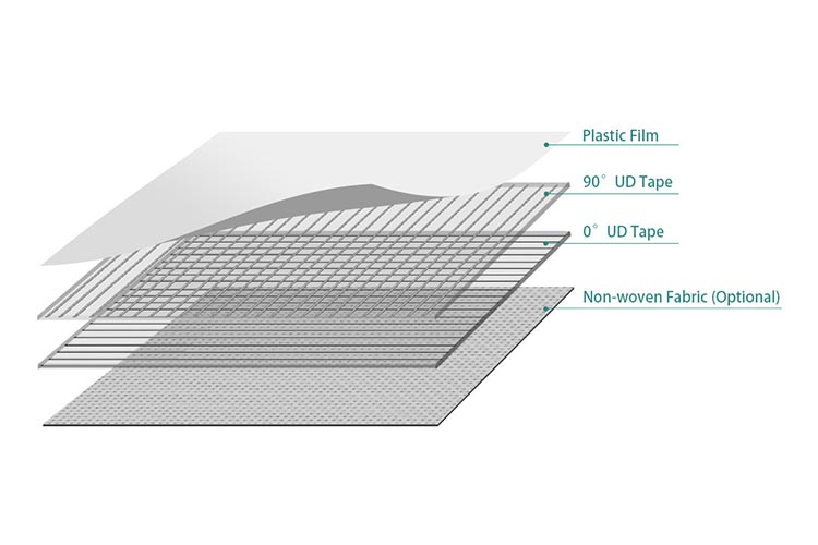 The number of layers of the CFRT sheet is determined according to the requirements, generally 2~9 layers, up to 40 layers, the more layers, the higher the strength. The cross-ply angle is generally 0°/ 90°, or 45°/ 45°.