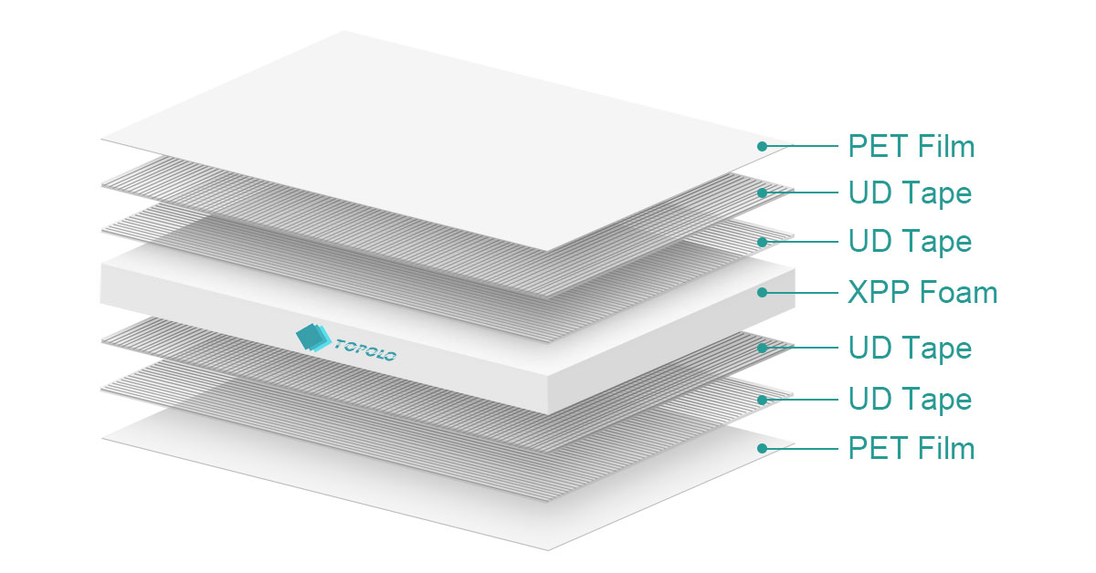Compared to composite panels that rely on adhesives, XPP foam is fused to the CFRT (Continuous Fiber Reinforced Thermoplastic Polypropylene) skin through a thermoplastic composite process, avoiding the delamination problem of the foam sandwich panel.