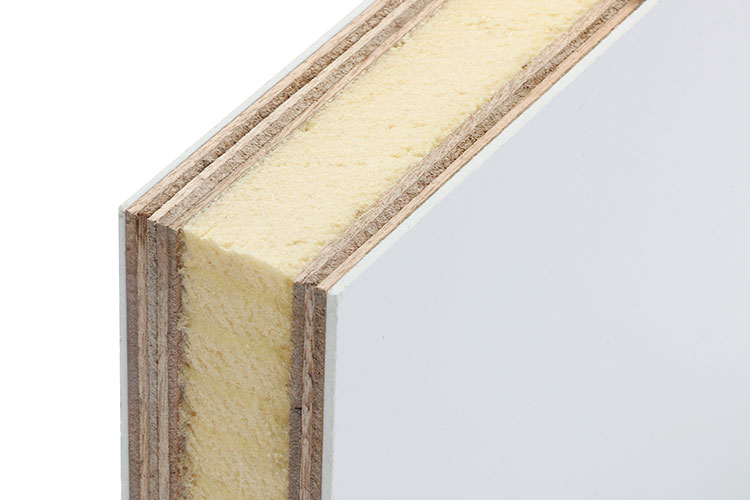 - Fire-rated plywood adds strength to the composite panels.