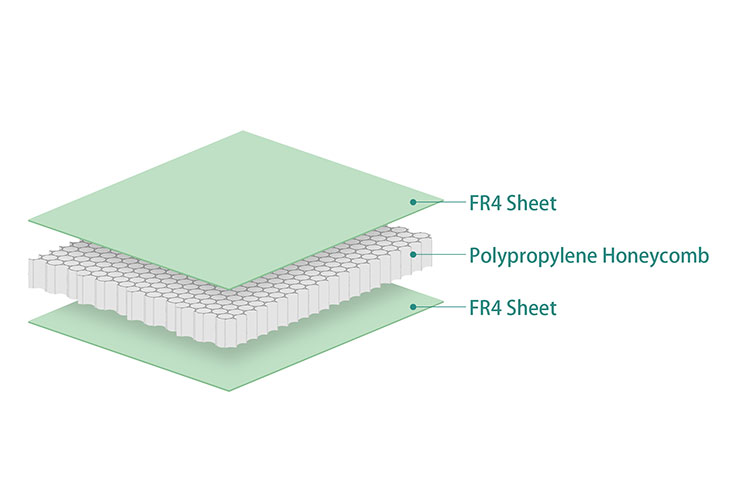 - Core Layer: 80kg/m³ PP(polypropylene) honeycomb. (Customized 60~160kg/m³)