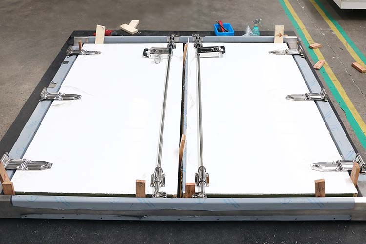 - Walls and roof: Made of FRP sandwich panels with core materials such as plywood, polypropylene honeycomb, PET foam, etc.