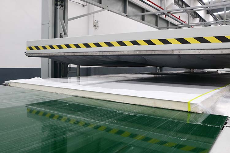 The operator does not need to touch the skin material, which avoids damage to the skin surface and reduces the adhesion of oil stains, thus improving the adhesion between the skin and the core material, and making the sandwich panel very smooth. It is also a detection platform that can directly detect whether the skin material meets production requirements.